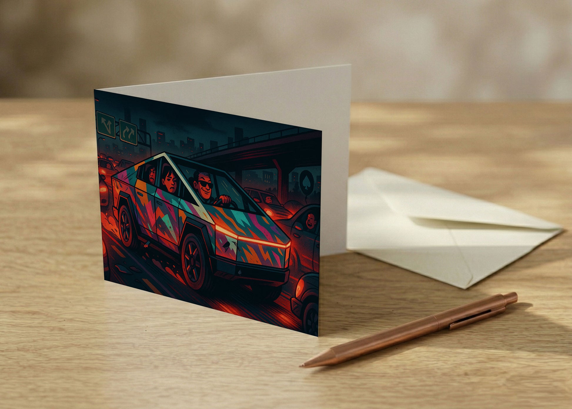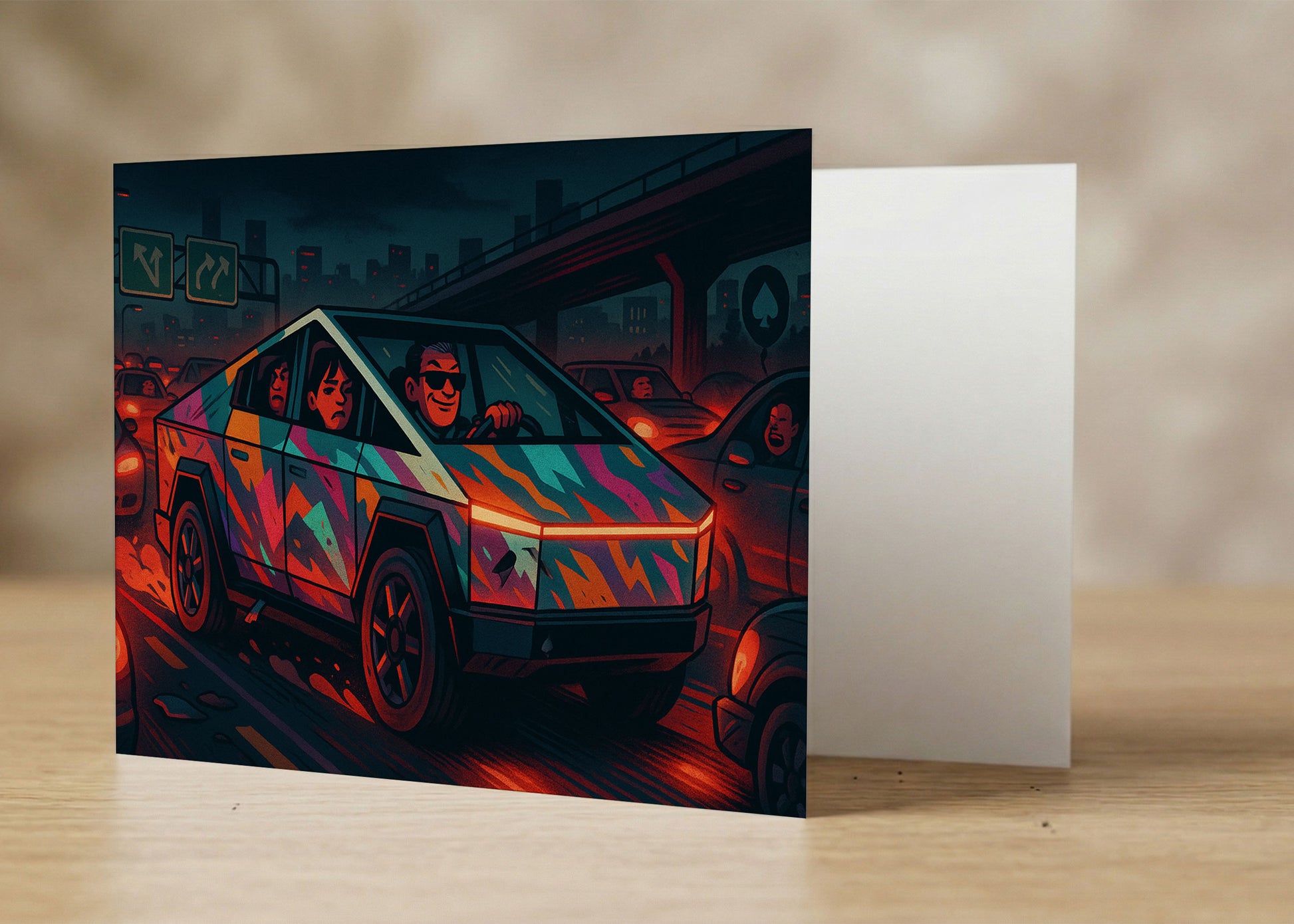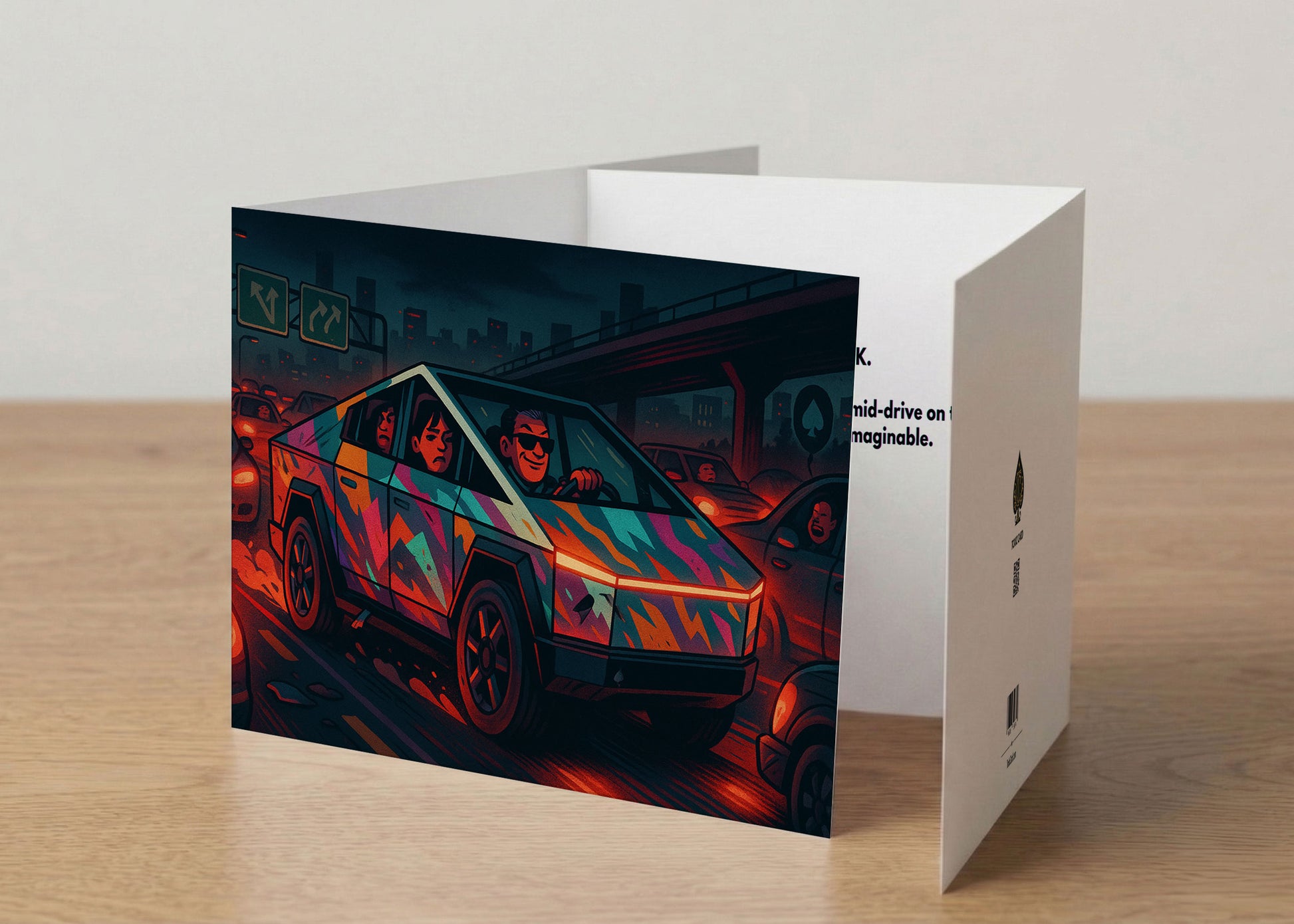My neighbor got a Cybertruck and I needed to say something. This card said it for me. He laughed, then got defensive. Mission accomplished.